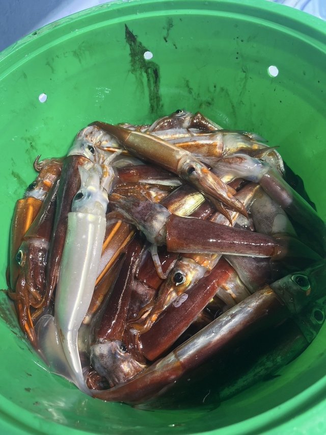18~25cm 11~65匹 那珂湊沖、前夜イカ船に出船。 海上は穏やかで乗りポツポツでした。手釣りのお客様は100杯を超えてました。 明日、夜イカ船は予報悪く出船中止です。