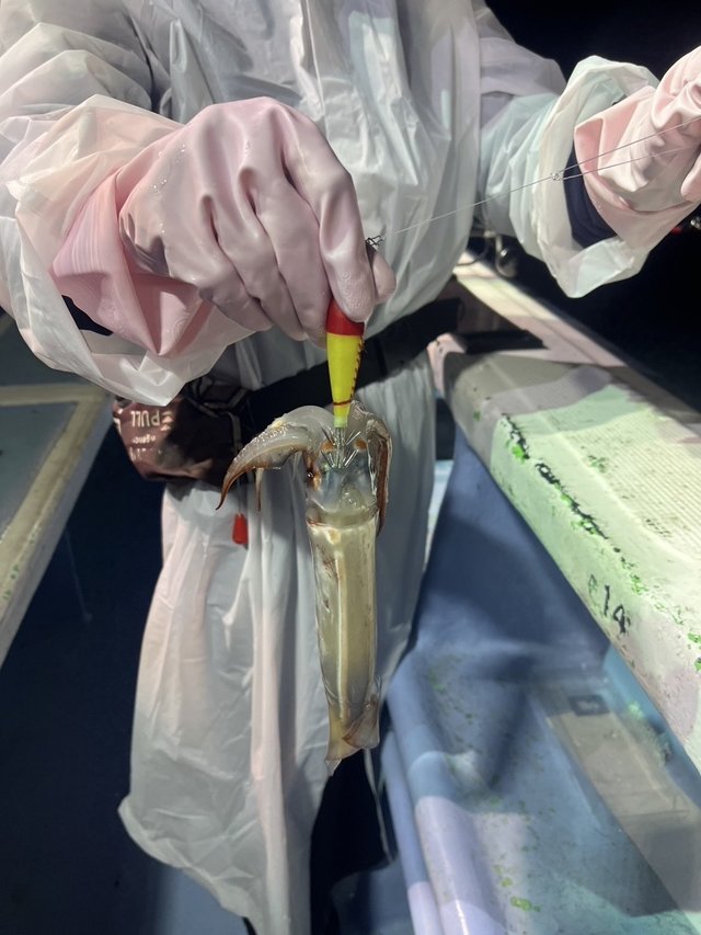 20~30cm 20~95匹 イカメタル専門船12~87杯 時化後でまだウネリは高かったですが雨陽気で月も隠れていて、ここ何回かの釣行の中ではイカの乗りは良かったです(^^) イカのサイズも良くなってきているので今後に期待です! 水中ライトは必須!(LEDの物) オモリ→100号・120号(針数6本以上は150号の用意も) 仕掛け→2.5号の浮きスッテ イカメタル→30号以上!