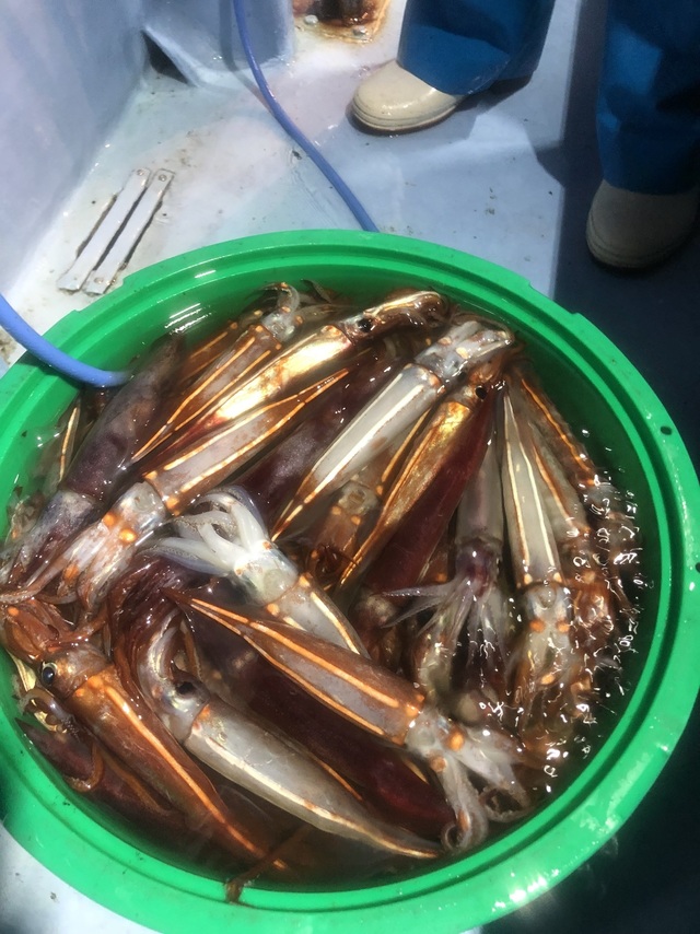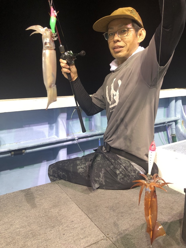 25~35cm 48~120匹 ◆半夜スジイカ船好調 サイズ25~35cm イカメタル48~75杯 ノーマル95~120杯 イカの乗り良く数が上がりました。 ご乗船の皆さん、暑い中大変お疲れ様でした。ありがとうございました。またのお越しをお待ちしております。