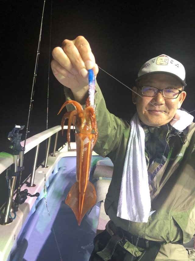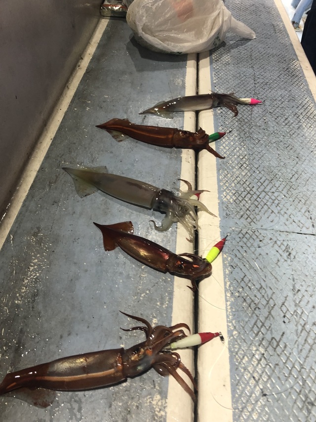 25~35cm 22~50匹 ムギイカ 20~25cm 0~6匹 ◆半夜スジイカ船 サイズ25~35cm スジイカ22~50杯 ムギイカ0~6杯 海上台風の影響で波が高く釣り難い状況でしたが何とか数が上がりました。 ご乗船の皆さん、大変お疲れ様でした。ありがとうございました。またのお越しをお待ちしております。