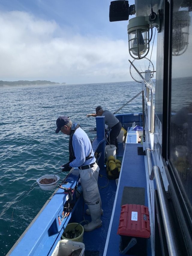 クロムツ アジ カガミダイ サバ イサキ 竿頭20匹 マダイ 竿頭3匹 マハタ ソーダカツオ 黒ムツから入り、だんだんと釣れて、入れ食いタイムもありました。単発多かったので数伸ばし辛かったようですが、お土産出来ていました。他アジ・カガミダイ・さば。 後半のマダイ五目はイサキ釣りながらマダイ狙う感じで適当に遊べました。どうしても差が出てしまいますが、マダイはトップ3匹、次いで2匹がお2人。イサキトップ20匹程度・マハタ・メジナ・ソーダカツオ等。