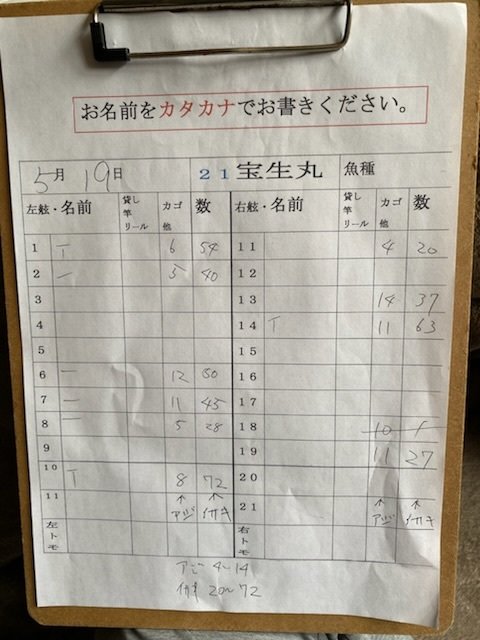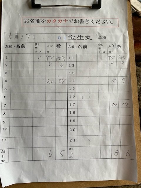 10~40匹 マダイ メジナ メバル アジ 今日は朝の内、ベタ凪でしたが、、 予想より早く、雨、風になってしまい、8時30分に納竿でした、、イサキは皆さん、お土産に。 19日定休日。 21日午前イサキ、シマアジに出船。 23日午前イサキ、シマアジに出船。午後マダイも出船。 6月15日午前鬼カサゴに出船。 集合時間は4時。