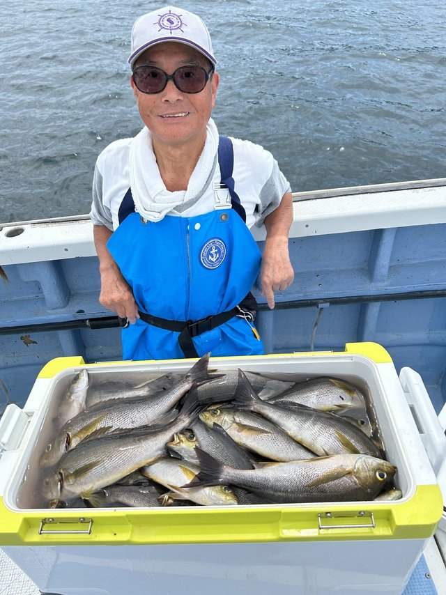 24~38cm 0~14匹 シマアジ 0.40~2.14kg 0~3匹 今日は開始から良いとこ入って一人喰わすと二人三人とアタリ続きバタバタっと!バラしやハリス切れ根に入られたりで本日も手強いです(汗)が、お手頃サイズ~1.5㎏位のシマアジもgetでき、アタリ多く複数匹getの方もいてサイズup☆少し良い汗かけました(笑)慣れてない方(2回目の挑戦)もキロクラスget☆中盤~後半も、同時ヒットや連チャンヒットありで、1㎏オーバー~2㎏オーバーでサイズupの方も増え、0匹2名、トップ3匹2名、他複数匹getの方もいてくれ、ゲストイサキ(数)とマダイ(数)とメジナ混じってくれました☆アタリ数は途中から数えるのやめました(笑) ☆8月~9月30日までの、釣りモノ☆ *午前イサキ(シマアジ)釣り、2名様から出船確定! 残り期間1カ月位と僅かになりました。心残りのある方や自己記録更新狙っている方達、是非引き味を体験しに来て下さい! *午後マダイ釣り、3名様から出船確定! ☆今後の出船予定です☆ ○明日8月29日(金)、 午前イサキ(シマアジ)釣り出船確定、まだまだ募集中です! *その他の日(来週も)も、出船確定出来て無い日や空き多数(ガラガラ汗)の日ばかりです(泣)連日チャレンジャー大募集中ですので、皆様宜しくお願い致しますm(__)m早めの御予約たすかります☆ ○明後日8月30日(土)、 午前イサキ(シマアジ)釣り出船確定、4名様、大募集中! ○8月31日(日) 午前イサキ(シマアジ)釣り出船確定、まだまだ大募集中! ○来月9月も御予約お待ちしてますm(__)m ○9月1日は、定休日です! ○9月2日(火)、 午前イサキ(シマアジ)釣り出船予定、0名様、大募集中! ○9月3日(水)、 午前イサキ(シマアジ)釣り出船予定、0名様、大募集中! ○9月4日(木)、 午前イサキ(シマアジ)釣り出船予定、2名様、大募集中! ○9月5日(金)、 午前イサキ(シマアジ)釣り出船予定、0名様、大募集中! ○9月6日(土)、 午前イサキ(シマアジ)釣り出船確定、3名様、大募集中! ○9月7日(日)、 午前イサキ(シマアジ)釣り出船予定、1名様、大募集中! ○9月8日~12日(月~金)、ご予約受付中ですm(__)m ☆10月1日(解禁初日)からの、釣りモノ☆ *午前ヒラメ釣り、2名様から出船確定!ご予約受付中ですm(__)m *午後マダイ釣り3名様から出船確定! ○御予約は、随時受付中ですので、皆様宜しくお願い致しますm(__)mお待ちしてます!