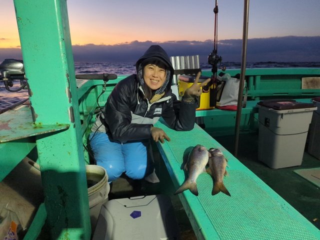 30~46cm 0~1匹 クロムツ 28~34cm 2~7匹 12月28日はクロムツ〜アマダイ五目で出船しました。 晴れで西風が強く波が2m。 クロムツは28〜34cmが2〜7尾。 クロシビカマス少し混じる。 良い外道は6〜30尾。 アマダイ五目は潮流れず30〜46cmが0〜1尾。 他にキダイ·ホウボウ·カイワリ等。 水温17.1度、澄でした。