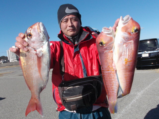 (アカアマダイ)マダイ マダイ釣り。 航程15分。 マダイ、一人約0~5枚、型は約、0,3~1,5kg。 外道にアマダイ、一船で約、5匹、型は約、25~40cm。