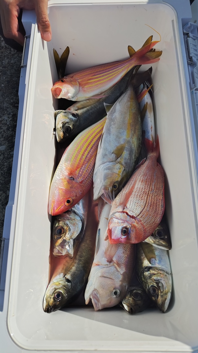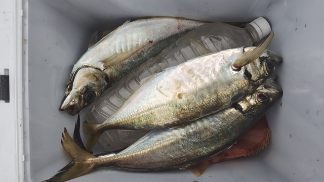 (イトヨリダイ)25~40cm 0~4匹 シロアマダイ 36~38cm 合計2匹 アカアマダイ 28~40cm 合計3匹 カイワリ 21~25cm 合計5匹 アジ 18~38cm 8~24匹 アジ・アマダイ五目乗合でアマダイからスタートして、イトヨリ、 シロアカアマダイと顔出し外道も色々と喰って楽しめました。 後半2時間アジで早々に顔出しポツリ ポツリとデカ奴も混じりおかず、 お土産になりました。
