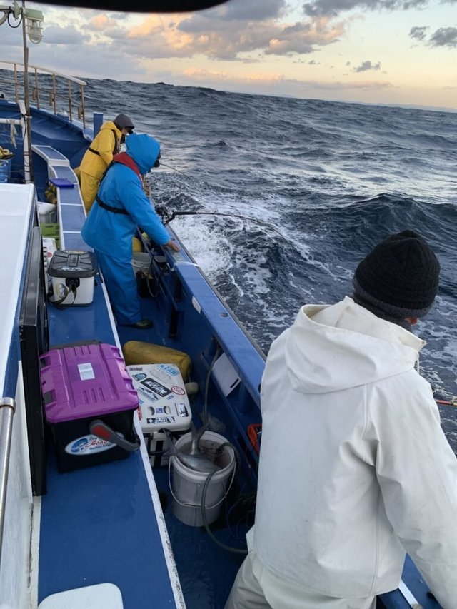 28~34cm 2~7匹 アカアマダイ 30~46cm 0~1匹 12月28日はクロムツ〜アマダイ五目で出船しました。 晴れで西風が強く波が2m。 クロムツは28〜34cmが2〜7尾。 クロシビカマス少し混じる。 良い外道は6〜30尾。 アマダイ五目は潮流れず30〜46cmが0〜1尾。 他にキダイ·ホウボウ·カイワリ等。 水温17.1度、澄でした。