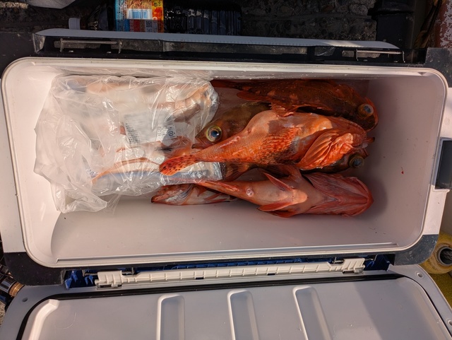 最大0.91kg 5~18匹 メダイ 0~3匹 サバ フラッシャーサビキ五目~アマダイ五目のリレーへ出船。 Fサビキ五目のクロムツは、良型主体に、 キロ近い特大サイズも交じってポツポツと釣れました。クロムツ5~18匹。良い外道は、反応多くあるも、反応の割に食いは良くなく、型は交じりでしたが5点6点掛けもあり、皆さんお土産に。他にメダイ0~3匹。サバ少々。 クーラー満タン超えの方も。 後半のアマダイ五目は、今日は全く潮流れず外道のみでした。