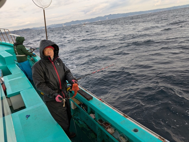 0~5匹 スルメ 竿頭6匹 今日午前船はフラッシャーサビキ黒むつ五目へ。黒むつは潮が全く流れないせいか?反応あるも食い渋り0〜5匹。他の魚は順調に釣れたようです(^。^)! 後半は久しぶりに勝浦沖(実際は鴨川港より行程約30分の行川沖)スルメイカへ。ここのところ絶好調模様でしたので、ワテらもお客様もルンルン気分で! やり始めるとすぐにスルメの顔見れて、反応もあちこちに多く見られましたので、 「やはりな(笑)こりゃ今日はいただわい!マジで。ニヤリ(笑)」 って、途中でウチの船のすぐ近くでクジ◯君がバシャバシャと大暴れ!そりゃイカも気が気でなくなりますよね。(泣)その後は反応少なくなり、潮型も悪くなり苦戦のままタイムアップ(涙) スルメイカは皆さん顔見れてトップ6杯。ダブルトリプルなどもありましたので、邪魔者や潮型次第で今後もまだまだ楽しめそうですねー 本日は寒い中、ご乗船ありがとうございました。またよろしくお願いします。 午後船はファミリーフィッシングへ。 ほな、