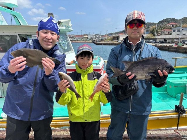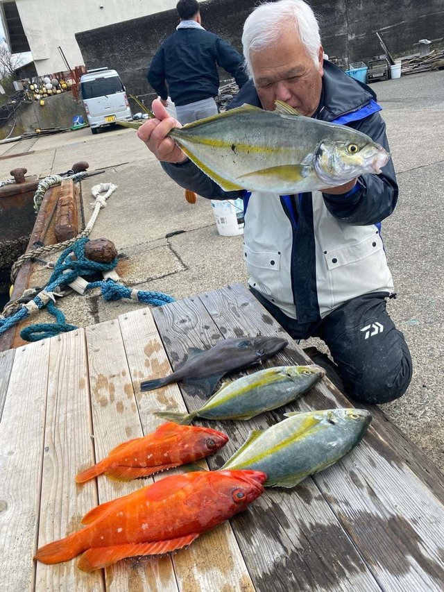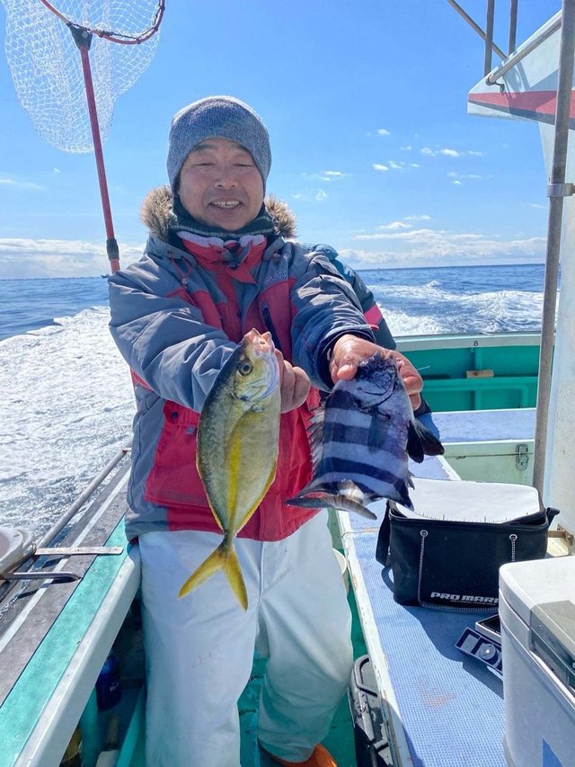 シマアジ 最大1.70kg 0~1匹 イサキ メイチダイ メジナ ムロアジ ヒラソウダ 午前便4時半集合定休日第2、第4水曜日人数様限定 今日は一日、海上も凪模様に恵まれ、半数のお客様が貸し竿さんでシマアジ狙いに出船してまいり、今日も潮の流れは良く、小物君のあたりも活発に、ときおり、シマちゃんのいいあたりにバレもあり苦戦をしいられてしまいましたが、今日もシマちゃんのお顔を見ることができましたよ〜!!!と、今週も明日から船上は空きが非常に多く非常に寂しい状況ですので、ご予約のお電話、お待ちしておりま〜す!!!