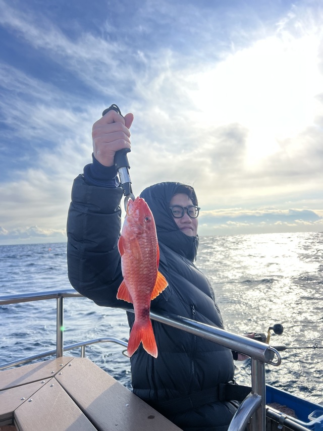 今日は一日、海上も凪模様で本船(乗り合い船)別船仕立て船)共にシマアジ狙いに出船してまいり、今日も潮の流れは良く、小物君のあたりもありながら、ときおり、いいあたりも多くありましたが、今日もすっぽ抜けやハリス切れ、横取り君の邪魔もあり大苦戦をしいられてしまい、今日も残念ながらシマちゃんのお顔を見ることができず、またしても、明日へのリベンジとなってしまいました。「連日、あたりはありますので、明日も頑張りましょう!!!」 今日の半夜キンメ船も夜は予報が悪くなってしまいましたので、出船を見合わせることになりました。夜の操業は安全第一となっておりますので、ご了承下さいませ。 明日のシマアジ船も只今、ご予約者様、2名様と今週もご予約表は非常に寂しい状況ですので、シマアジ船、半夜キンメ船共にご予約のお電話お待ちしておりま〜す!!!