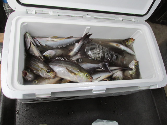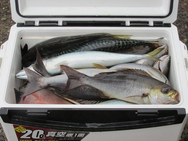 (マサバ)36~43cm 合計30匹 イサキ 28~40cm 20~50匹 アジ 25~36cm 6~14匹 ハナダイ 23~33cm 0~4匹 今日もイサキ・アジ鯛のリレー釣りで出船、朝から少し南風が吹いてましたが釣果の方は相変わらず投入後すぐにイサキの型が出てポツリポツリ釣れているような感じで少し波があったせいか前回よりは食いが落ちましたが2点3点掛け多数で今日も規定数達成者ありで片貝沖に移動、時間までアジと花鯛を釣って頂き帰港しました、皆さんどうも有り難う御座いましたまた宜しくお願いします。・5月13日(火)イサキ花鯛で出船予定。(1人)・14日(水)イサキ花鯛で出船予定。・15日(木)イサキ花鯛で出船予定。・16日(金)イサキ花鯛で出船予定。・17日(土)イサキ花鯛貸し切り船。・18日(日)イサキ花鯛で出船予定。・6月1日(日)イサキ花鯛貸し切り船で他の曜日も予約が入ればイサキ・花鯛・テンヤ真鯛どちらでも出船しますので問い合わせお願いします。