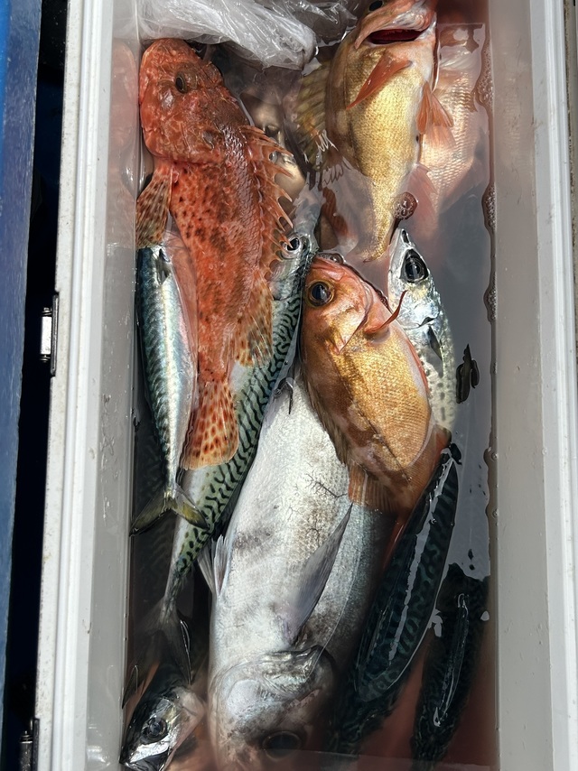 サバ~オニカサゴのリレー釣りで出船しました。 本命のオニカサゴは不調でしたが メダイ、ウッカリカサゴ、メバル等好調でお土産充分でした 明日は定休日でお休みします。 集合時間が4時になりました。よろしくお願いします