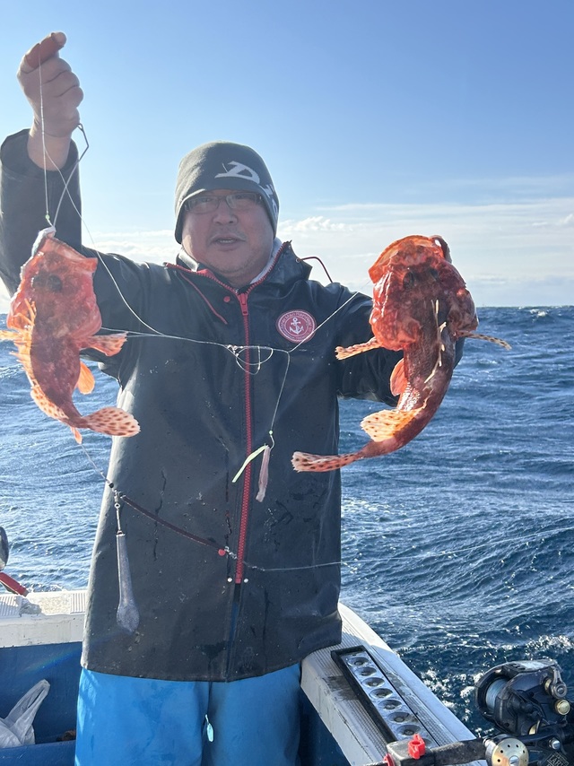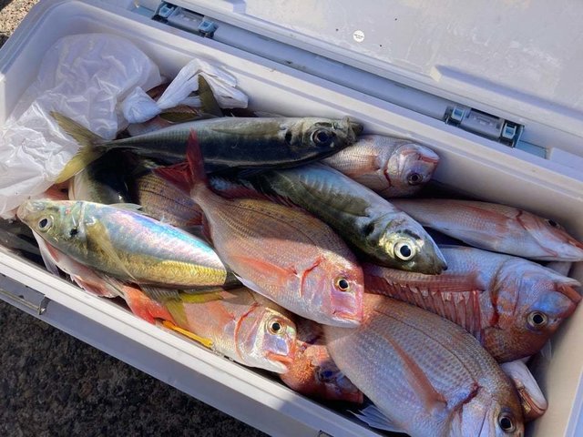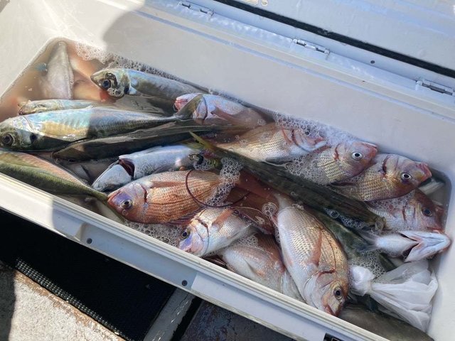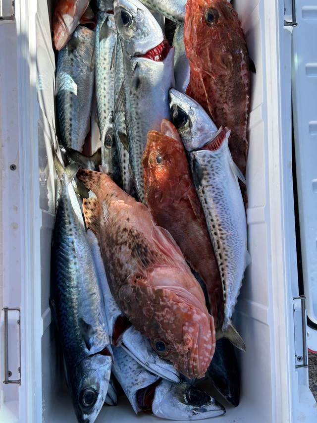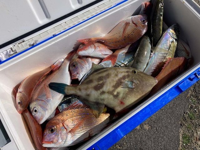 (マサバ)35~45cm 0~2匹 マダイ 35~43cm 0~2匹 カサゴ 25~40cm 0~2匹 イサキ 20~27cm 0~5匹 ヒラメ 50cm 合計1匹 ウマズラハギ 20~27cm 0~1匹 [好調モード?!] 本日午前タイラバ便、午後五目便での出船でした。 午前便ではみなさんタイラバ初チャレンジということでレクチャーからスタート! 潮が程よく流れておりそう濁りも少しだけありました。 真鯛はポツポツと序盤に2枚釣れました。 その後はサバやカサゴもGET! ウッカリカサゴはかなりいいサイズでしたね~ 浅場も少し探索しましたがアタリこず、、、 ノッコミはまだまだかな?! 午後便では前日イサキが釣れたポイントで、一投目から50cmサイズのヒラメがヒット!笑 これはびっくり!ラッキーでしたね笑 水温も回復傾向なのか、イサキ、ウマズラハギなどポツリポツリ釣れてお土産GETでした♪ 明日も午後便五目釣りなので苦労せず釣れることを願います笑