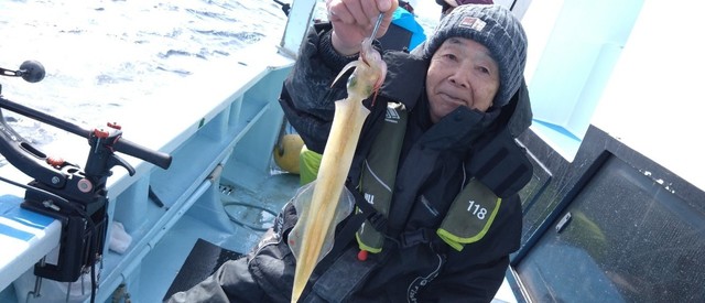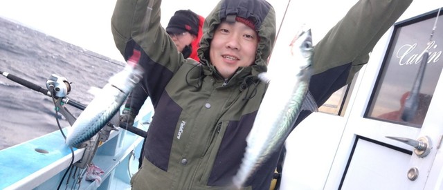 (マサバ)28~42cm 21~35匹 ヤリイカ 26~40cm 0~3匹 サバ~ヤリイカのリレー釣りで出船しました 朝はマサバが大型混じりで入れ食いでした! イカは乗り渋く、船中4杯。 スルメイカとヤリイカ半々でした