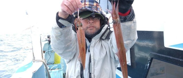 0~60匹 ヤリイカ 0~16匹 サバ~イカのリレー船。 真潮トロリ。 明るくなってから、 大型は少ないですが、 良型交じりでサバ入れ食い。 マサバ0~60匹、スソ船酔い。 9時からイカ。 サバが凄すぎて邪魔され苦戦。 ヤリイカ0~16ハイ、スソ船酔い。