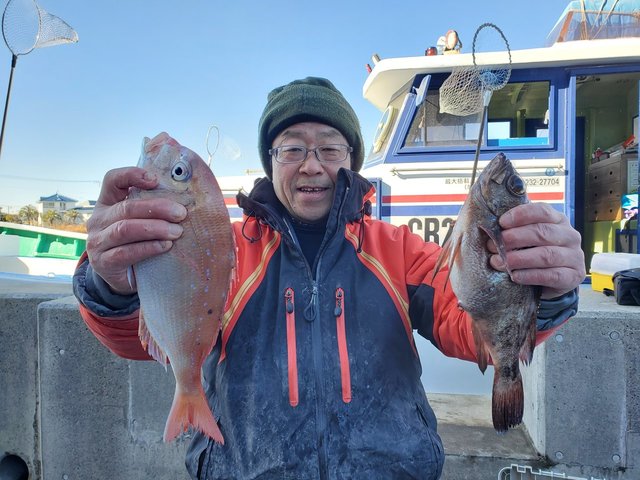 (チダイ)イサキ 竿頭10匹 マハタ 竿頭2匹 カンパチ 竿頭3匹 アマダイ 合計3匹 マダイ キダイ キントキ カサゴ ヤガラ ホウボウ ウマヅラハギ サバ 12月29日(日) 今日も沖アミコマセ五目釣り! イサキのお土産釣りながら五目釣り、後半はアマダイ狙いながらの五目釣りで楽しんで頂きました。 イサキは渋めでトップは10匹程度、マハタ(小型、トップ2匹)・カンパチ(トップ3匹)・アマダイ(船中、3匹)・マダイっ子、ハナダイ、キダイ(トップ10匹超え)・キントキ・カサゴ・ヤガラ・ホウボウ・ウマヅラハギ・さば等、魚種多彩です。