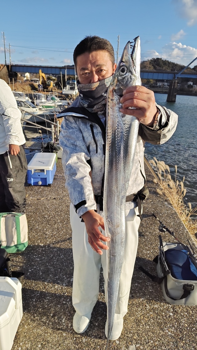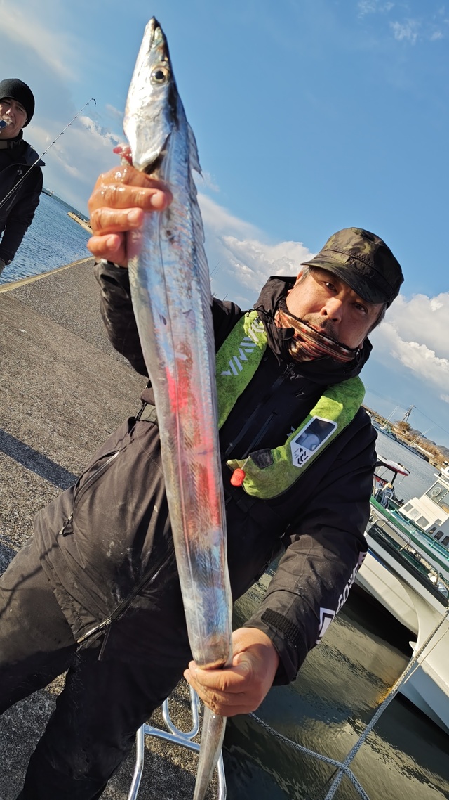 75~110cm シーバス 36~41cm 0~1匹 午前シーバス釣りです。 36~41㎝、 0~1匹。 終日反応あるもアタリ少なく苦戦しました。 写真はありません。 ----- 釣果その② タチウオ釣りです。 テンビン23~29匹、 テンヤ6~28匹、 ルアー1~12匹。 観音崎沖80m。 朝一から好反応見られ食い良く好調に釣れました。 その後は食いが収まってしまいペースダウンしてしまいましたが終日アタリは続いてくれてその中でもテンビン・テンヤが優勢でした。 前半は潮流れ悪くオマツリが目立ちました。 サイズは冬タチらしい90~100㎝クラスが多く見られました。 竿頭はテンビン・宍倉さま、テンヤ・間さま、ルアー・五島さま。