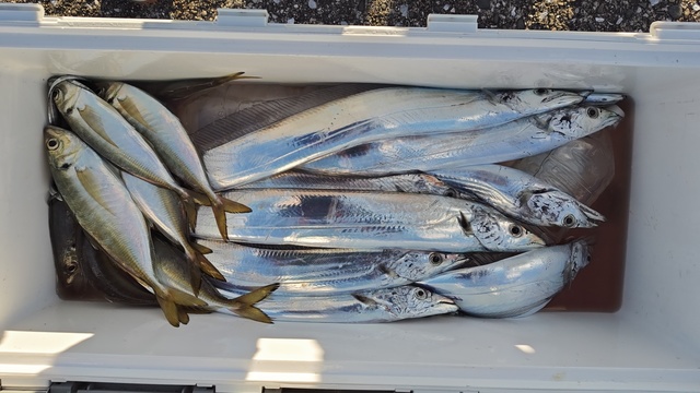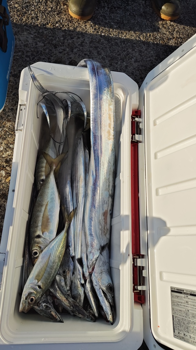70~105cm 10~35匹 タチウオ船出船しました 観音崎沖からスタート 朝イチから活性高く クーラーボックス満タンで途中で やめてしまう方まで 明日も出船します。 まだまだ空きあります。