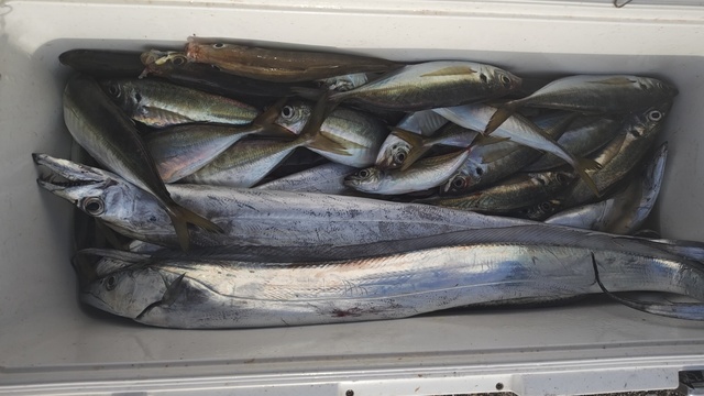75~115cm 0~2匹 アジ 25~32cm 6~15匹 アジ・タチリレー乗合でアジ、タチ 共に喰い渋く苦戦の1日でした。 タチはテンヤでした。