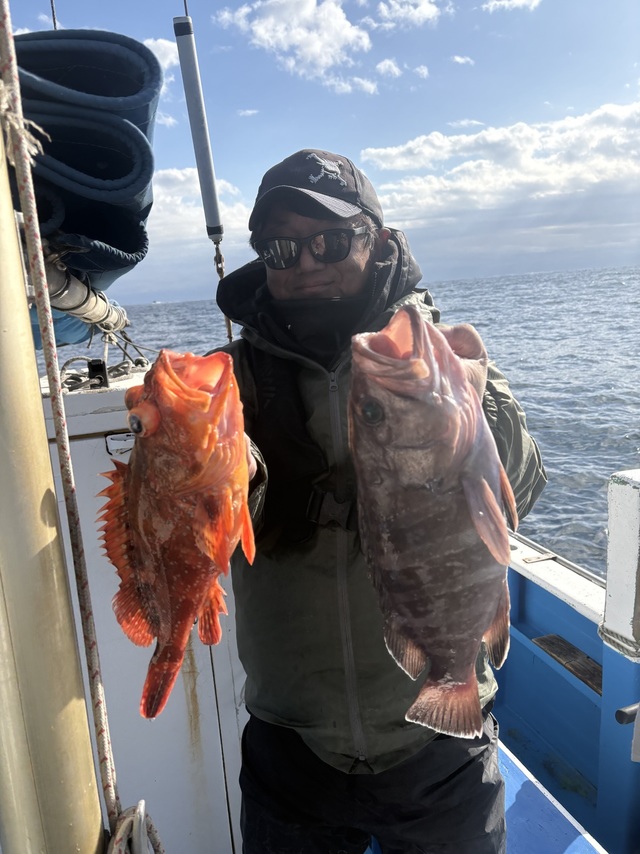前日の強風が治まり今日花鯛とヒラメで出船、北側の方から始め花鯛は釣れるのですが小さいのが多く転々と移動、後半何か所かで良型が雑じって釣れてお土産程度になりヒラメは3人で10匹釣れて最大は2.0㎏でした、皆さん寒い中どうも有り難う御座いましたまた宜しくお願いします。(花鯛の小さいのは数に入れてません。)・12月14日(日)予報悪く出船中止。・19日(金)ヒラメで出船予定。・20日(土)ヒラメで出船予定。・21日(日)ヒラメで出船予定。・25日(木)花鯛で出船予定。・27日(土)ヒラメで出船予定。・28日(日)花鯛ヒラメで出船予定。・29日(月)花鯛ヒラメで出船予定。・30日(火)花鯛で出船予定で他の曜日も予約が入れば花鯛・ヒラメ・テンヤ真鯛どちらでも出船しますので問い合わせお願いします。