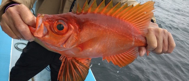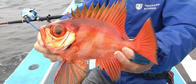 キントキ 今日はまた少し風の予報でしたが出船できてホッとしました。 今日は根魚五目に出船しましたよ。朝のうちにハタとキントキ。