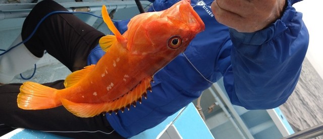 (マハタ)0.50~1.80kg 0~1匹 カサゴ 23~30cm 9~27匹 SLJ,イワシ五目! 朝のうちサビキで餌用のイワシ、アジ狙いはポツリポツリ釣れた。 のち根魚狙いはベイトの反応見えるが、潮あまり流れず活性今ひとつだが、終日ポツリポツリカサゴ主体にマハタのアカハタ、クロメバル交じりで釣れた。