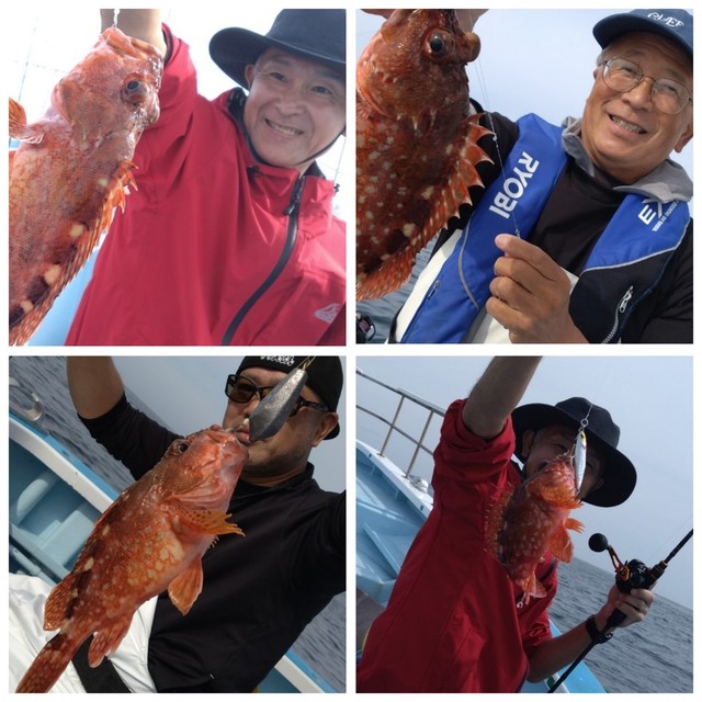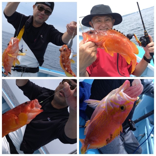 (マハタ)マダイ 0.30~3.80kg 0~6匹 カサゴ アカイサキ カンダイ ワラサ ウマズラ メダイ 乗っ込みマダイ絶好調。 1キロアップ、中鯛、大鯛連発入れ喰い、マダイの型良く中鯛8枚、大鯛2枚、1キロ以上が8枚、1キロ以下は数枚で最高でした、0枚1名を除いては全員中鯛キャッチ、明日も楽しみ。明日はお客様の御予約がまだ入って おりませんお電話お待ちしております。