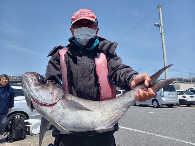 メダイ 1.20kg 0~1匹 サバ 25~40cm 4~5匹 アヤメカサゴ ユメカサゴ 【釣行時間】5:00〜10:30【潮汐】大潮(月齢27)満潮3:36干潮9:50【天気】曇り/晴れ【気温】14〜16℃【水温】16.8→16.5℃【水色】澄み/紺→澄み/青緑【風】北東強【波】北東大【潮流】逆潮0.2〜0.7kt→無し→逆潮0.5〜0.6kt→込み逆潮0.2kt〜0.8kt【海域/水深】乙浜沖35〜250m【乗船人数】3名。 GW前でご予約も少なく、またしても1週間ぶりです…。本日は【中深海スロージギング五目釣り】アラ、イシナギ、ブリとか、夢を求めて中深海へGO!!思っていた以上の強風と高波!!船も大揺れなので、こういう時は本当に気をつけて。初っ端、メダイGET。この調子で続いて欲しかったのですが、その後はサバばかり…。海も大荒れなので、徐々に浅場の方へ戻っていく事にしました。浅場に入ってもサバの当たりばかりでした…。