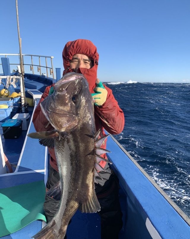 0.50~0.90kg 1~3匹 ガンゾウビラメ 29cm 0~1匹 サバ ユメカサゴ 【釣行時間】6:00〜11:30【潮汐】長潮(月齢23)満潮9:30【気温】5〜10℃【水温】16.4〜16.9℃【水色】澄み/暗→澄み/紺【風】北東やや強→北東弱→東弱→東微→南東弱→南弱→南西やや強→南西強→西強→南西強【波】北東中→北東小→南西うねり大→南西中【潮流】出し逆潮0.2〜1.0kt→出し潮0.5kt〜0.7kt【乗船人数】2名。。 本日は【オニカサゴ五目釣り】。 7:20、晴れてきたタイミングなのかな〜??まあまあサイズGET。本日は良型出ませんが、まずまずかと思います。