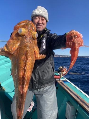 (イズカサゴ)1.00kg 合計1匹 クロムツ 28~30cm 0~1匹 ウッカリカサゴ 0.60~2.50kg 0~2匹 2月12日はクロムツ〜オニカサゴで出船しました。 晴れで波が1.5m。 クロムツは反応薄めでクロシビカマスの邪魔が多く28〜30cm0〜1尾。 良い外道が12〜30尾。 メダイが少し混じる。 オニカサゴは1.0kgが4名様で1尾。 ウッカリカサゴが0.6〜2.5kgが0〜2尾。 水温15.7度、澄でした。