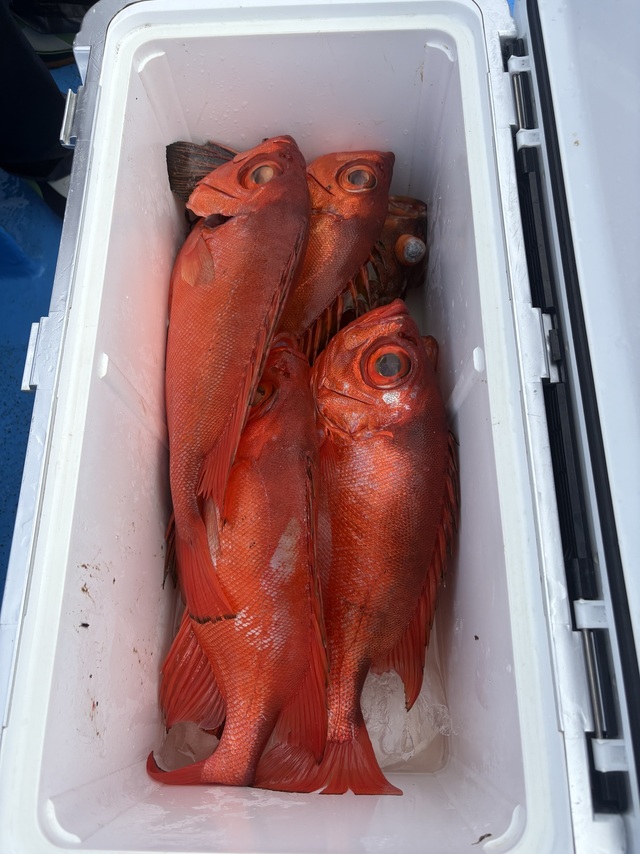 キントキ 25~43cm 0~15匹 マハタ AM5:00出船。 キントキ狙いで千倉のポイントへ。 バタバタと、入れ食いUPの時間もありました。 0尾は1名様で痛恨のバラシ...。 他にマハタ、カサゴは多数混じった。 明日は予報悪く、中止となりました。 月曜日はスルメイカへ出船です。