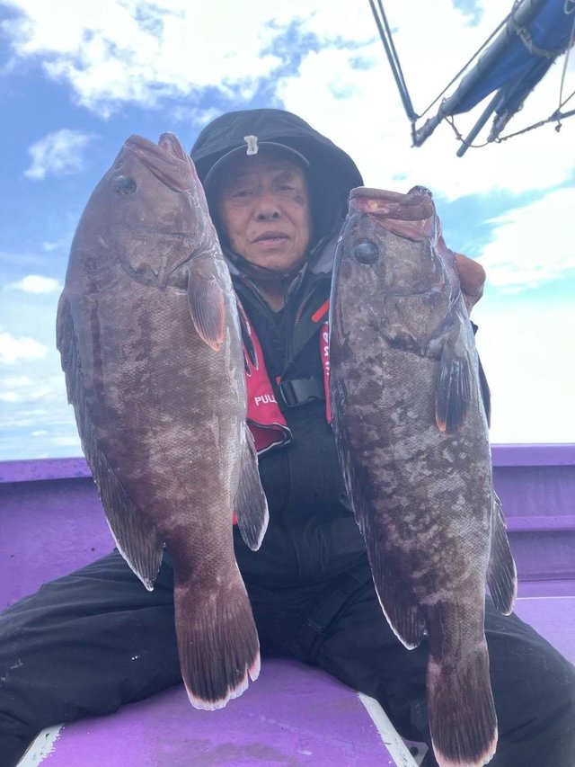 (ウスメバル)オニカサゴ 最大1.20kg 0~3匹 ウッカリカサゴ サバ 本日の鬼カサゴは最大で1.2㌔の0~3匹にその他はウッカリカサゴ、オキメバル、サバ。 若干うねり有り船酔いで頑張って竿を出している方やダウンしている方もいたので、2枚の画像はほぼほぼ1名様の釣果です。