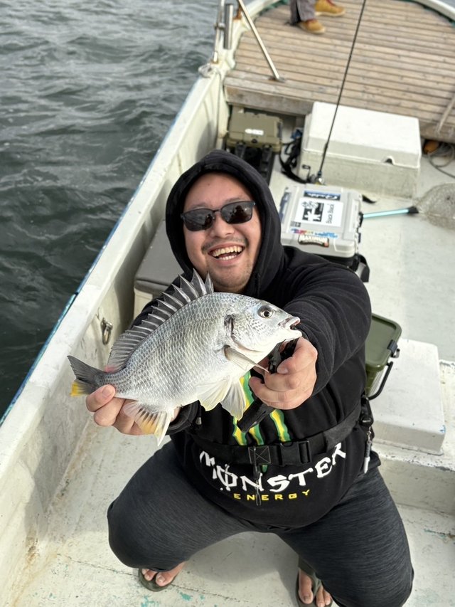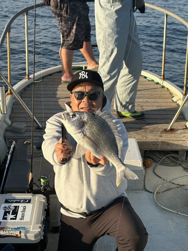 47cm 合計1匹 シーバス 15~55cm 合計4匹 ヒラスズキ 30cm 合計1匹 マサバ 20~25cm 合計2匹 Night&DAYチャーター2号艇石井ちゃん 本日は深夜に急遽ご予約をいただき、そのまま沖からレッツゴー! さっきまでベタ凪だったのに、急に風が出てきてユラユラ…。まずは近場を軽くチェックしてみましたが、反応がイマイチだったので南下してポイント移動。 南側ではポツポツとバイトはあるものの、なかなか乗り切らず苦戦。 最近調子の良かったポイントですが、やっぱり“そのタイミング”が存在する感じですね。 その後も明暗を転々としながら探っていくと、魚は居るのに口を使わない…。 そんな中で顔を出したのはまさかの黒鯛! 夜が明け始めた頃、ようやく反応が良くなってきて、なんとかシーバスをキャッチ!ヒラスズキも混ざってくれました。 明るくなってからさらにポイントを変えて反応を追うと…まさかのサバ登場(笑) ミッドナイト便は全体的に難しい状況でしたが、最終的に魚の姿が見れてホッとひと安心。 ご乗船ありがとうございました!