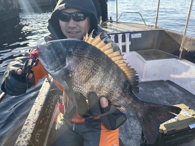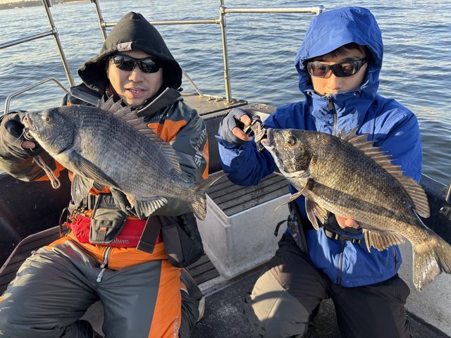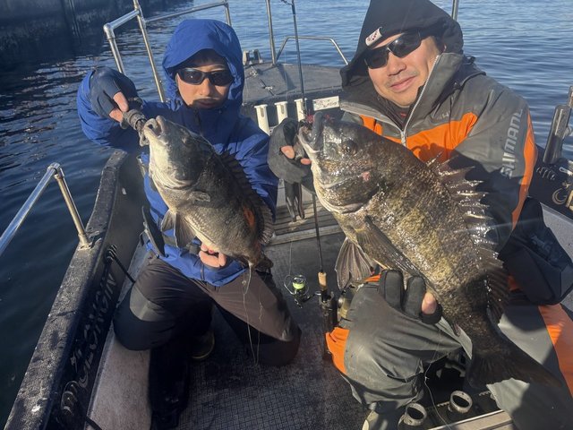 40~51cm 合計19匹 AM黒鯛落とし込み便 常連様を乗せて出船! まずは十八番ポイントでカニを使って釣りスタートすると当たりバキバキ! 半分流したらもうカニ消滅、お兄さんはキャンディー。弟さんは恒例の変な事やり始めてタイラバ?みたいなバス用のワームで釣り続行、笑 キャンディーでもヒット連発+訳の分からない中華製のワームでもヒット連発w 途中お二人共50アップのランカーもキャッチされて釣れる魚の質も最高! 40センチ以下は居なかったんじゃ? お二人共腕が良く流石はターゲットの黒鯛落とし込みの火付け役です お兄さんがツヌケして弟さんはやや失速気味で8枚キャッチ! ヒットは40回位でした。 色んな釣りを経験している方って釣りウマの傾向がありますし案外違う釣りでも通ずる物ってあるかもしれません。 上手くなればシーバスのオフシーズンでもこんなに質良い魚がバシバシ釣れるのにイマイチ人気が薄い気が!?笑 道具も安いし手軽に初められます! 皆さんも是非お試しあれ!