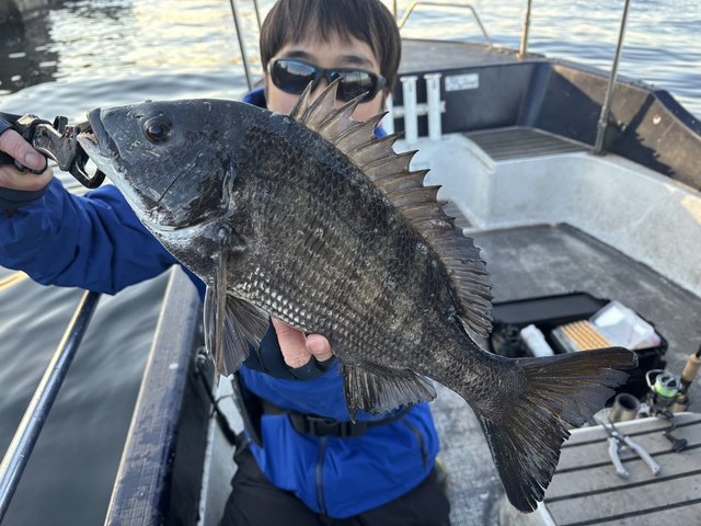 40cm 合計1匹 シーバス 55~70cm 合計5匹 2/1DAYシーバス 本日は常連様とDAYシーバスで出船! まずは近場からスタートするも、なかなか当たらず苦戦…。 あちこちポイントを当ててみるが状況は変わらず。 それでもポロポロっとアタリらしき反応が出始め、 なんとか60アップをキャッチ! その後は穴撃ちにシフト。 濁りも入っていたので打ち込んでいくと反応あり、 ポツポツと魚を拾っていき、なんとか形に。 ラストには70アップまで飛び出し、 数は伸びなかったもののサイズ感は十分! 途中には黒鯛も混じってくれて、内容のある一日になりました。