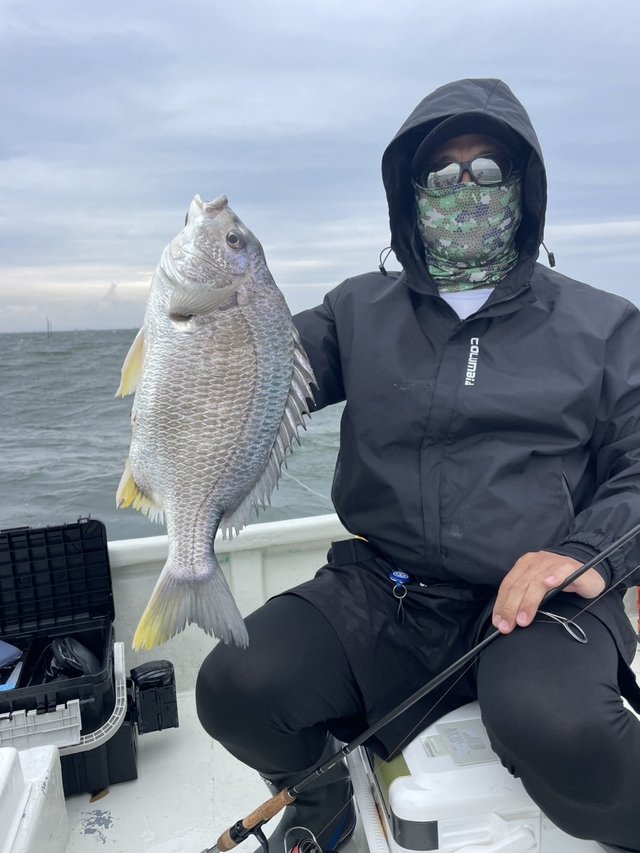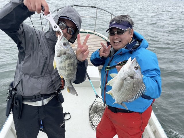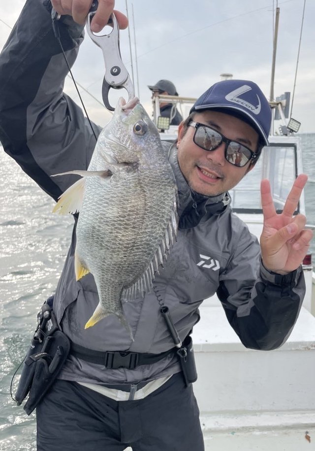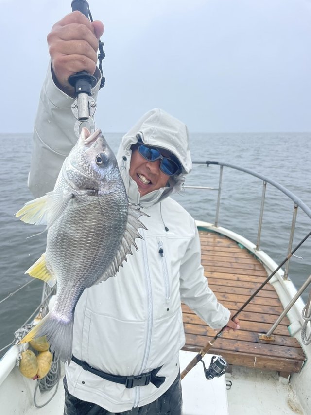 1.20~1.50kg 合計3匹 マダイ 0.70~1.10kg 合計6匹 イナダ 1.20kg 合計1匹 メジナ 1.30kg 合計2匹 イサキ タイ五目 マダイ0.7~1.1㎏6枚 クロダイ1.2~1.5㎏3枚 イナダ1.2㎏1本 メジナ1.3㎏2枚 イサキ少々 船上で料理して持ち帰る。潮が流れれば食いが良いと思う。