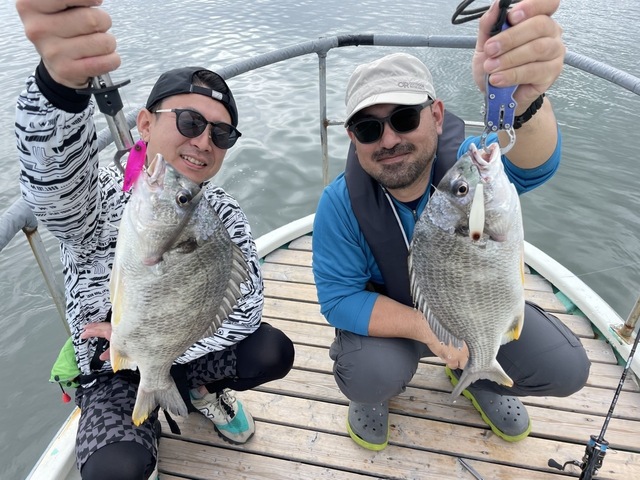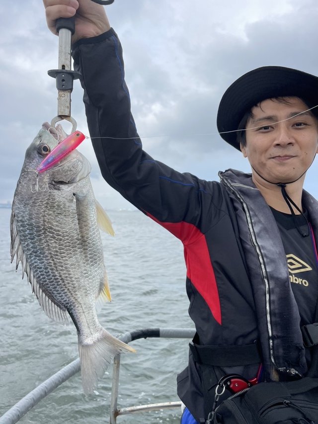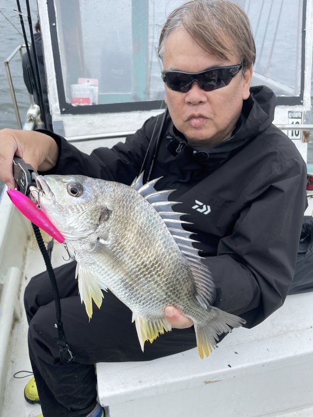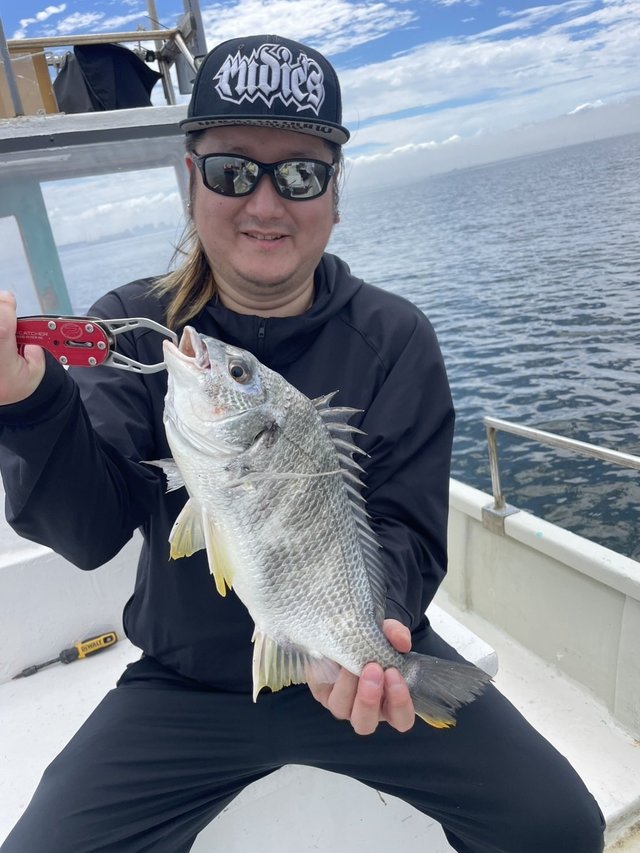 マダイ 最大1.70kg 合計22匹 イラ アジ スタートから赤クラゲの猛攻で苦戦 その後、移動して我慢もなかなか喰い立たず 右舷ミヨシへ大型ヒット? 艫名人へも大型ヒット? やり取りも、ん~サメのカップル。 この一発で、艫名人はトンネルへ いつも大型連発も今日は不調でしたね。 久しぶりの左舷ミヨシ名人3枚