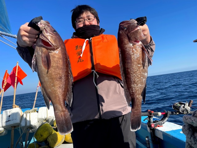 ハタ タイ カサゴ 長谷川さん、5、4キロ。 ヤッタ〜!デカイです。 柴田さん、3キロ+1、8キロ。 柴田さんのさかな。 ハタ2匹+タイ1、9キロ。 ヒラメ+カサゴ。 野崎さん、ヒラメ2キロ+1、5キロ。 松澤さん、1、8キロ+ヒラメ2、1キロ。 3月1日5名です。 宜しくお願いします。