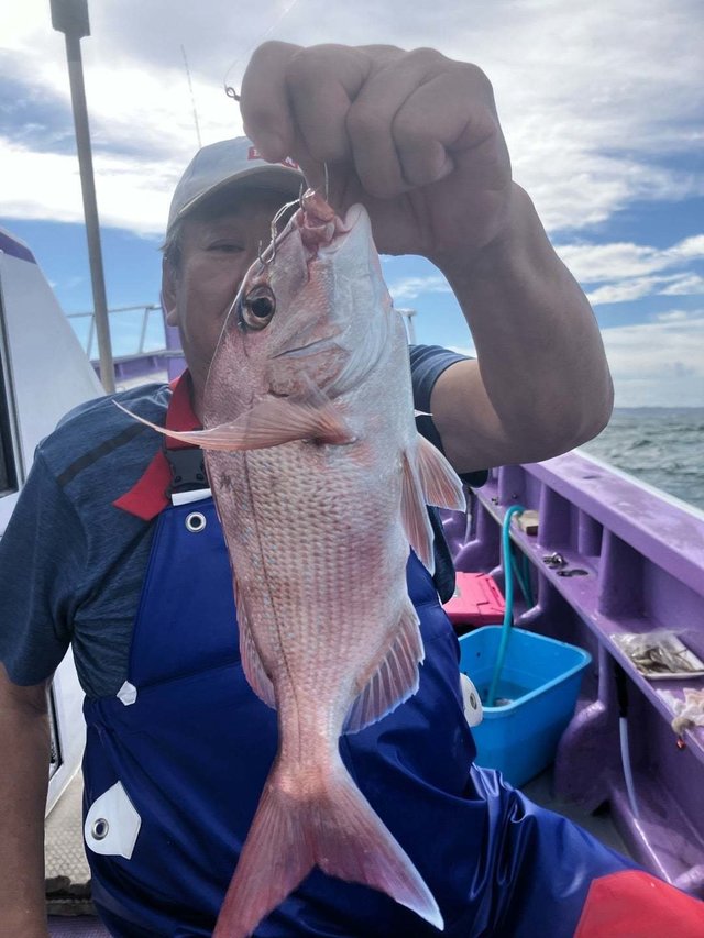 マダイ 0.40~0.80kg 4~7匹 ハタ 午前マダイ船。マダイ、ハタ、ガンゾウビラメの釣果です。