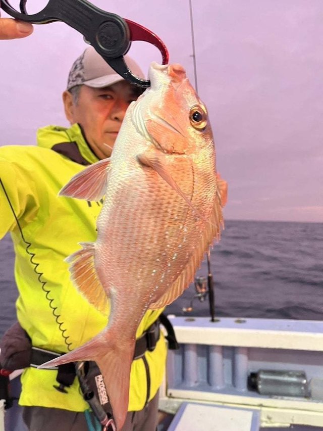 (ガンゾウビラメ)マダイ 0.30~1.00kg 1~5匹 ハタ カサゴ ヒラマサ 潮の流れは良かったが潮型悪かった、流すたびに型は出ていたが数伸びなかった。