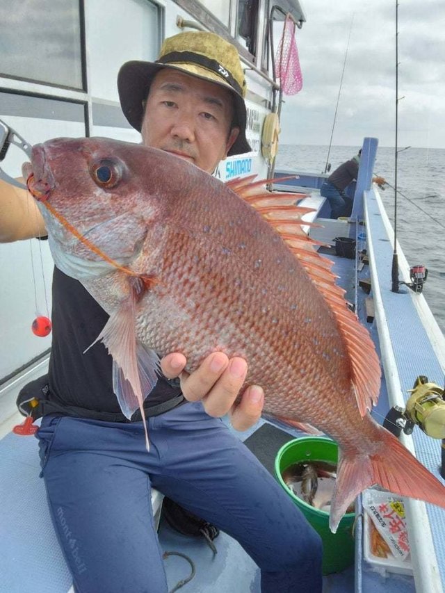 (ガンゾウビラメ)マダイ カサゴ ハタ 午後マダイ船。潮よく流れて中鯛3枚キャッチ。 大物のバラシも2つありました。