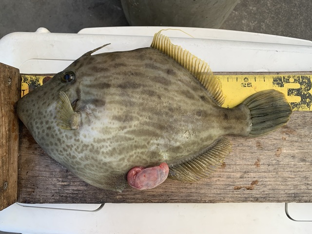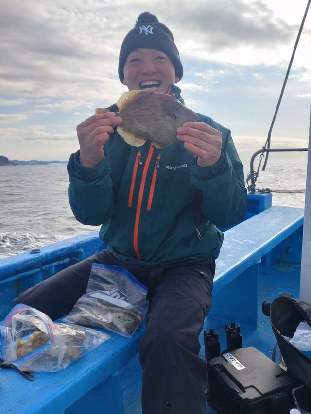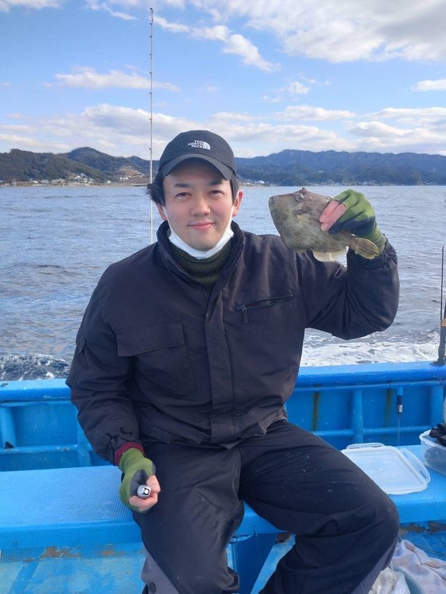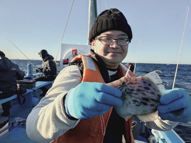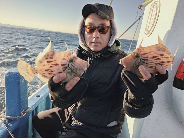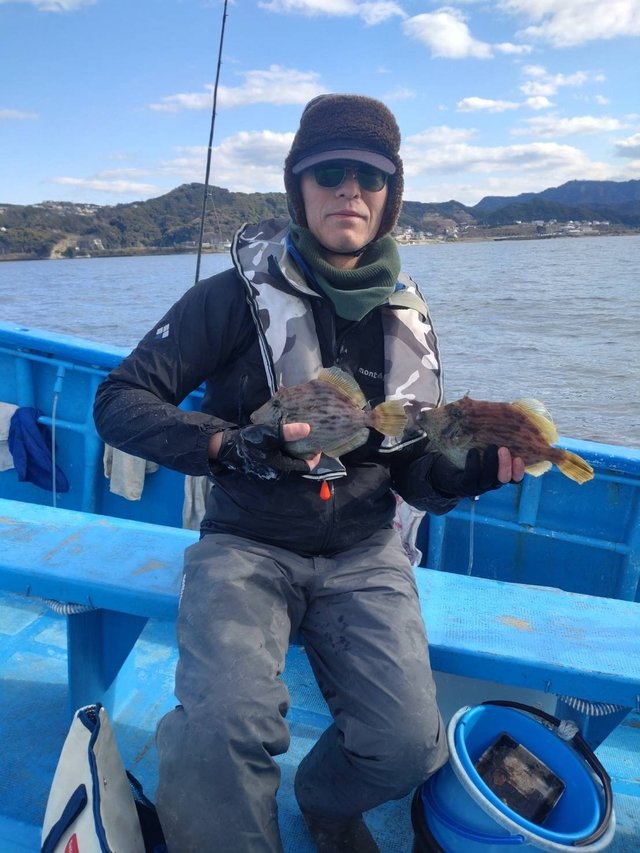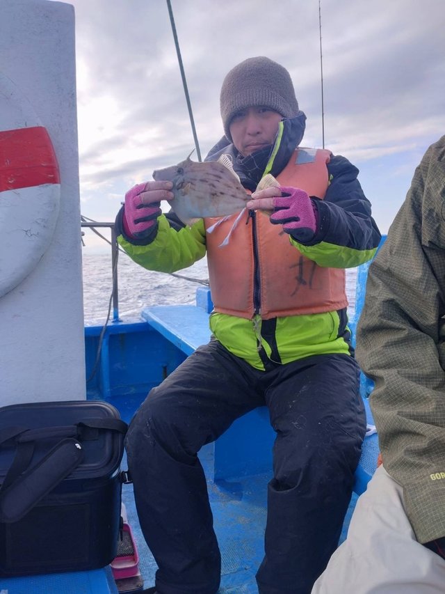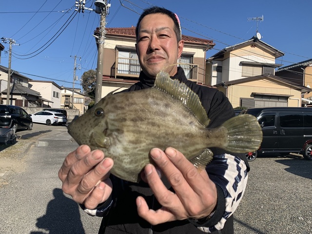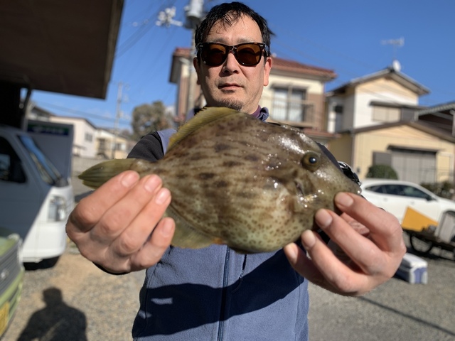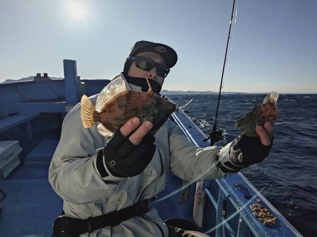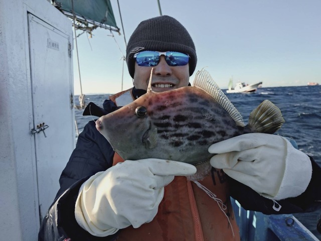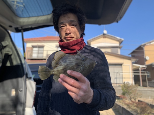 カワハギ出船!風が強くなり12:30で早上がりになりましたが、船酔いの方が31㎝の尺カワハギを釣り上げましたd(^_^o)寒い中ご乗船ありがとうございましたm(__)m