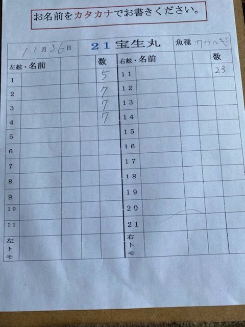 15~27cm 2~31匹 潮が良く流れ食い気もありポツポツ釣れました。 本日もご乗船いただきたいございました お疲れさまでした 感謝m(__)m 明日は予報悪く出船中止となりました。