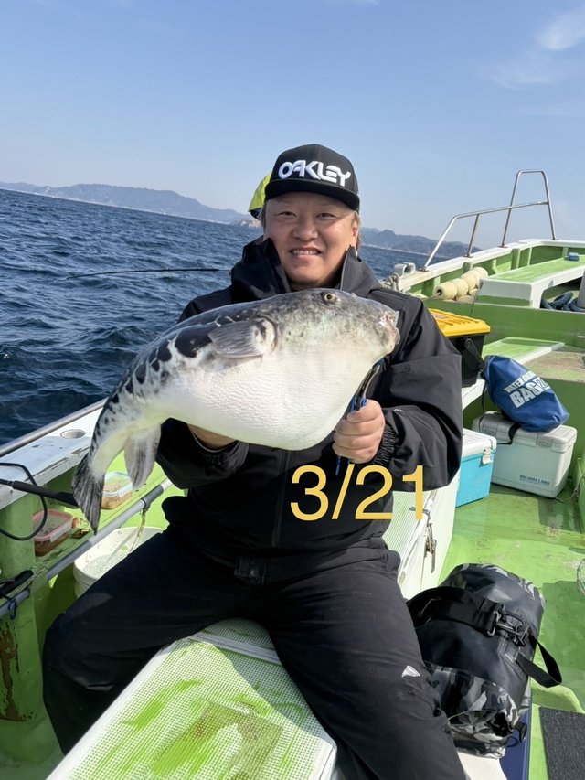 【午前トラフグ船】 反応多めでしたが終始拾い釣りになっちゃいましたね~(T_T) 深場も狙いますのでオモリは40号もお持ちください! 3月25日より出船時間が変更になり 4時受付で5時出船となります。 3/23~27の平日は空きあり、 28(土)29日(日)は満席となっております。 本日もありがとうございました。