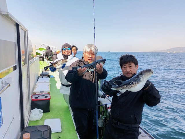 1.10~2.80kg 0~1匹 【午前トラフグ船】 朝一が調子よく当りがあります! 少しずつ反応が減り、後半は拾い釣りに。 もう少し固まってくれればいいんですけどね~! 深場も狙いますのでオモリは40号もお持ちください。 3/25(水)より5時出船(4時より受付)となります 午後1時~3時の間はお電話に出られないことが多いので 可能でしたらずらしてご連絡をお願いします ご予約状況はトップページをご覧ください 本日もありがとうございました!