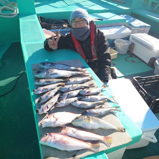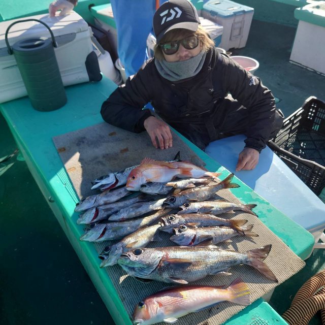 マダイ 1.30~2.60kg 0~3匹 アジ マダイ船。潮の動きがなかったのですが、1.5~2㌔台を 中心にマズマズでした。 早々にはハリス切れもありました。