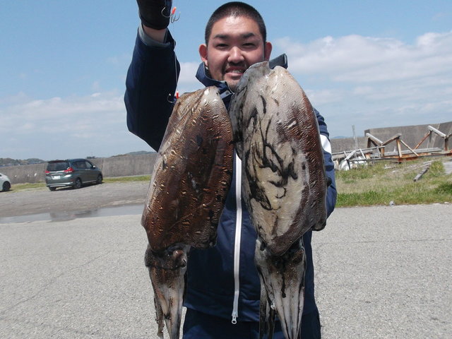 18~40cm 4~11匹 ヒガンフグ 1~2匹 タコ 1~2匹 カサゴ 太東沖15mから開始して、真潮流れる程度なので、少しずつ場所ずらしながら、18m付近まで遣りました。 型程度ですが、ショウサイフグは、釣れたら良型主体なので、型勝負狙いしました。 後半、潮止まったので、最後30分、港近くのヒガン(アカメ)フグ、ショウサイフグが、釣れた所狙って見ました。 根際乗せ投入すると、直ぐにヒガン(アカメ)フグ型見れて、まだまだ居ますね。 ヒガン(アカメ)フグは終わって見ると、1~2匹と嬉しいお土産になりました。 その他、タコ(kgサイズ)、カサゴなど。 明日20日も沢山空き有りますので、遊びに来て下さい。 お客様2名の釣果。