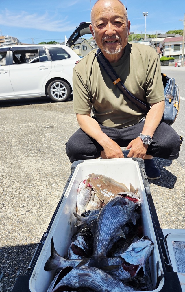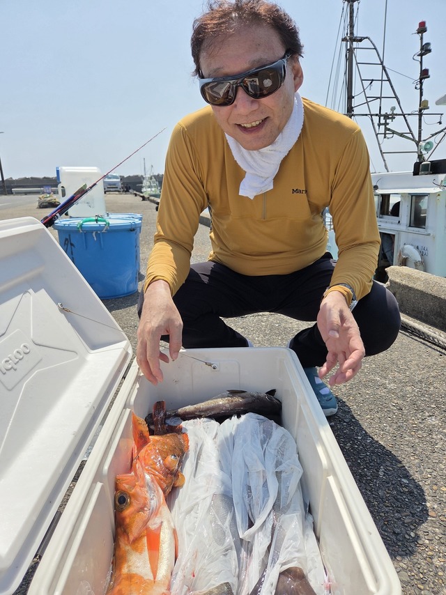 5.50~5.50kg 0~1匹 カンコ 0.80~2.00kg 2~5匹 メダイ 0.80~2.80kg 1~3匹 28日(木曜日)は都合により臨時休業致します。 明日はヒラメとイサキ五目(コマセ)、午後シロギスとイサキ五目(コマセ)で出船予定です! (クロムツ、ユメカサゴ混) 潮流れ丁度良くアラは1匹でしたがカンコやユメカサゴも沢山釣れクーラーが真っ赤な方も多々。メダイ3匹は2人。 また出船しますよ! 土日は午後シロギスとイサキ五目も出船します。エサの都合がありますのでご予約はお早めに\(^o^)/ 募集中(沖根魚アラ鬼カサゴ) 25日(月) シロギス釣れているのでエサは2パックあった方が良いと思います!午後からでもたくさん釣れています。 キスはエサの用意があるので、前日までにご予約下さい! アジハナダイとシロギスのリレー 前半アジハナダイ後半キスと楽しんで下さい! 変更、お知らせあればまたこちらで載せます。 人数集まれば出船致します。 人数が集まらないと出船できません。 人数と釣果次第で変更します。 天候の変わりやすい季節です、中止等お知らせで載せますが、遅い時間になる時もありますのでご心配の方は電話でお問い合わせ下さい。 今後はヒラメ、アマダイ、アジ&シロギスリレー、テンヤマダイ、沖根魚(アラ鬼カサゴ)、シロギス 午後テンヤマダイ、アジハナダイ五目(コマセ)、シロギス 出船予定です。 インスタ始めました\(^o^)/良かったら見て下さいね~。 初めての方や慣れていない方は是非、船長の見える場所へお座り下さい! 予約時すぐに電話に出れない時がありますが折り返します! 千葉東金横芝ICから匝瑳市(旭市隣)まで高速道路が延長になりました。最終、匝瑳ICで降りて右折、海沿いで是非いらっしゃって下さい。早くなりますよ~! 午前船のお客様はお弁当付いてます(ノ・∀・)ノ 集合時間 ヤリイカ、アカムツ、沖根魚、アマダイ3時 ヒラメ3時45分 マダイ、イサキ五目&シロギスリレー、シロギス4時 午後船は12時 時間厳守でお願いいたします! もし遅れる等の場合は早急にご連絡下さい。他のお客様を待たせてしまう、出船時間も遅れてしまいます。 リクエスト、人数天候等により変更あります! テンヤは遊動式しかけで!初心者でも釣れますよ~! 初心者の方、予約時お知らせ下さい。 救命胴衣(無料)、レンタル貸竿(基本無料。有料も有)ございます。