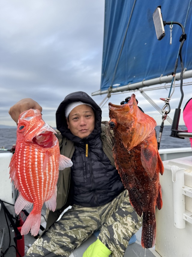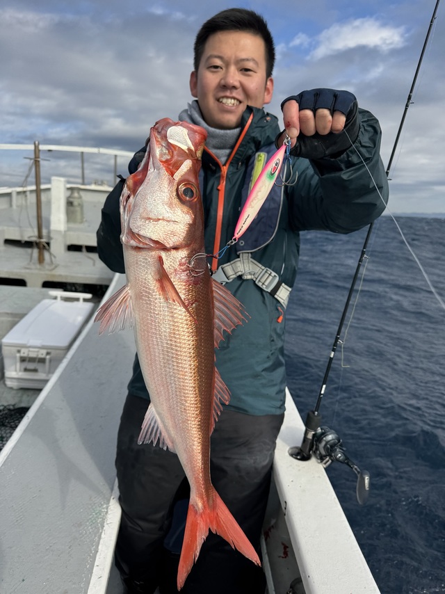(マエソ)30cm 合計1匹 朝から浅場で順調にヒット!! 大型のバラシもありながら キジハタにアカハタ、 スマカツオも浮上!! 後半深場も周って反応の割には アタリは控えめでしたが キントキ、ウッカリ、アヤメ など顔見せてくれました! 次回も期待して行きましょう! 明日14日(日)は 悪天候でお休みします!